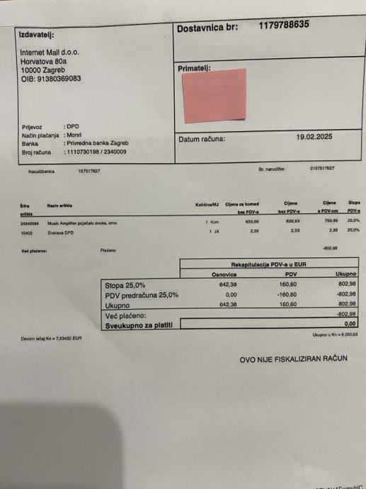 Na uvid račun i jamstvo od još godinu dana