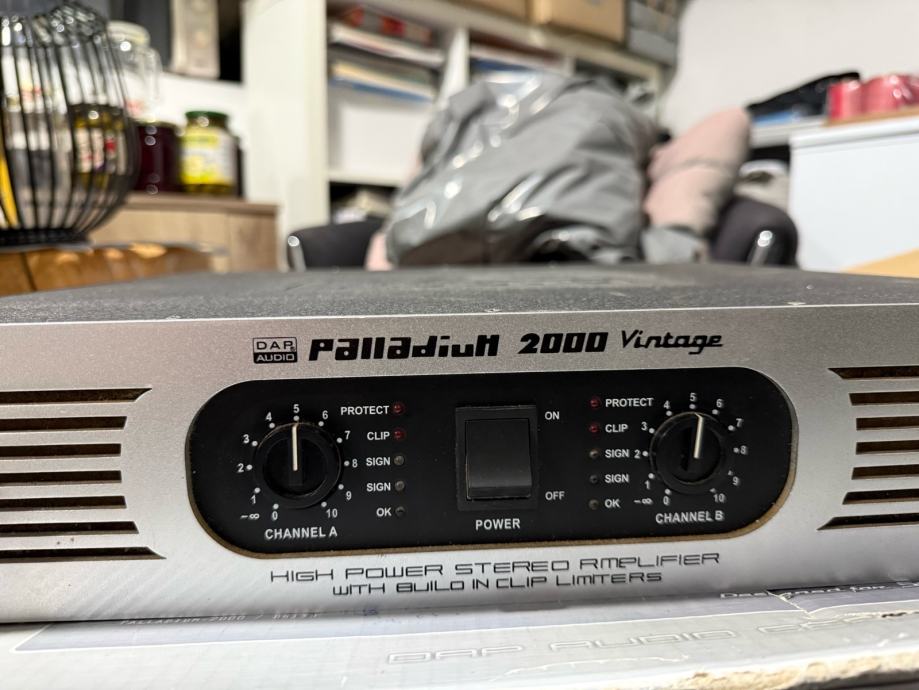 Prodajem vintage DAP Audio Palladium 2000 pojačalo s ugrađenim limitatorima, idealno za profesionalnu audio opremu. Ovo snažno stereo pojačalo visokih performansi savršeno je za ozbiljne audiofile i glazbenike. Uređaj je u dobrom stanju i spreman za korištenje u vašem audio sustavu.