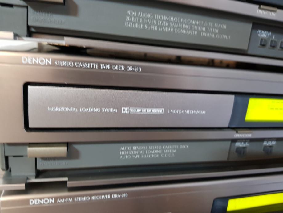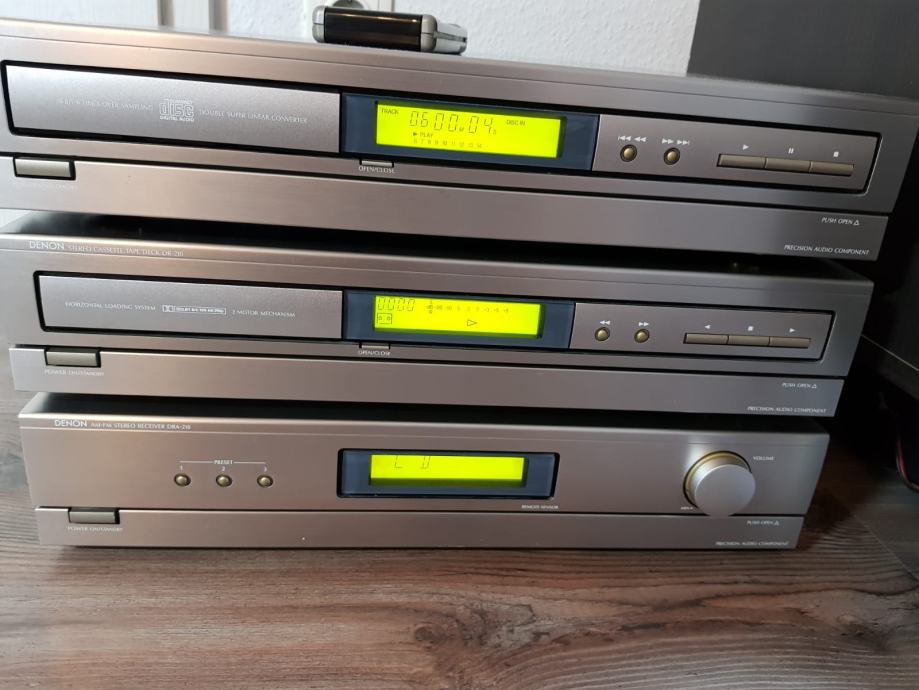 Prodajem denon design hifi sustav iz 210 serije. , dek dr210, cd player dcd210 i reciver dra210. Ispravno stanje i radi kako treba. Dolazi s daljinskim upravljačem i kablovima za spajanje . Vrlo očuvano i sve u funkciji, te ispravno stanje. Za tehničke karakteristike molim proguglati. Zamjena me ne zanima. Cijena je fixna. Ne odgovaram na SMS poruke ili pozive, dakle sav kontakt i dogovor isključivo tu preko njuškala.
