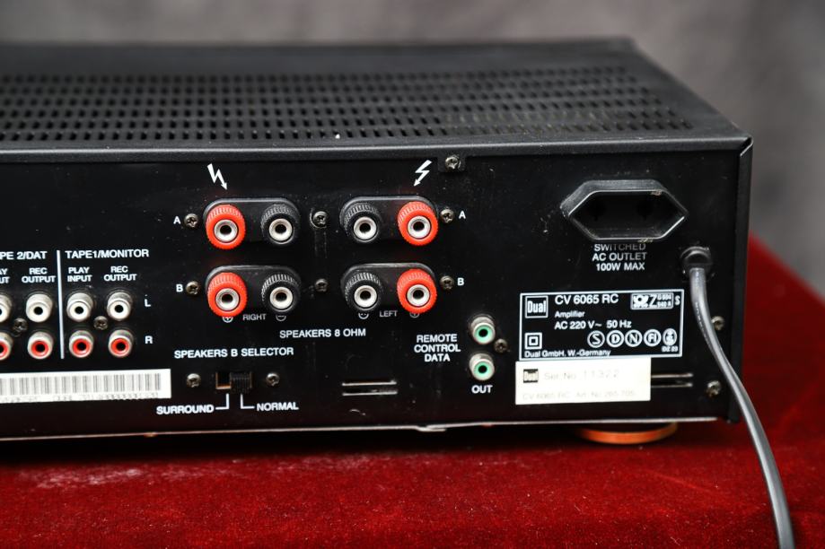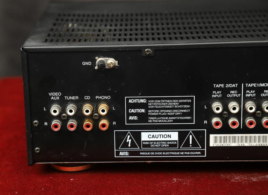 6 Eingänge: Phono, Tuner, CD, Tape1 / Monitor, Tape2 / DAT, Video / AUX