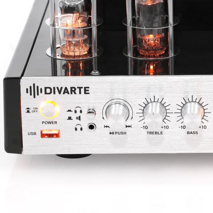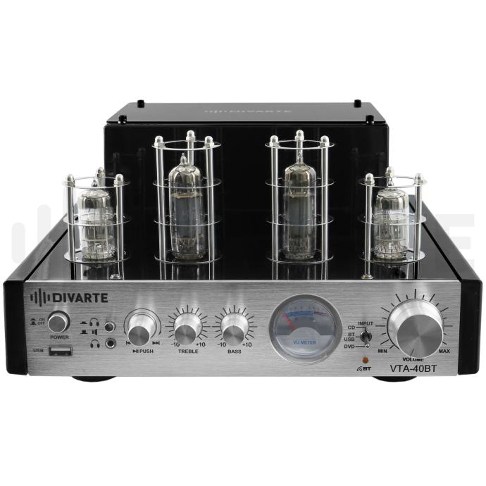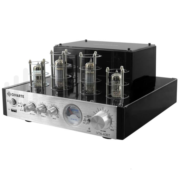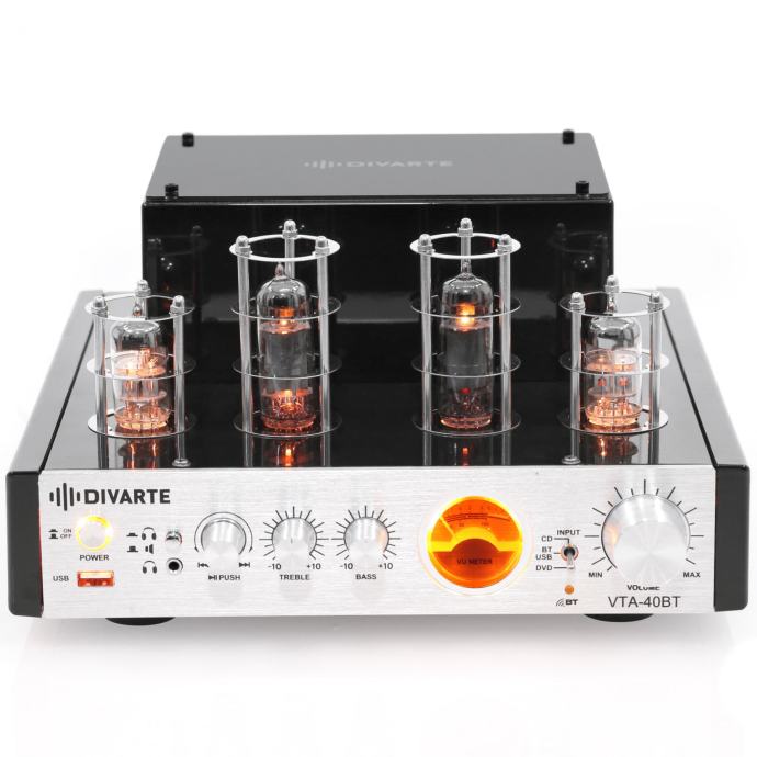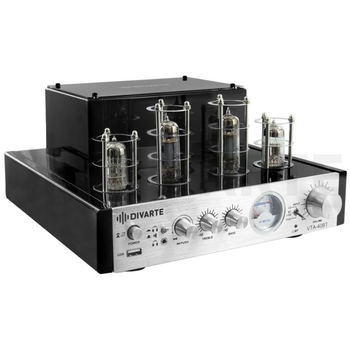 Divarte VTA-40BT je "vintage" inspirirano, a moderno cijevno pojačalo, koje uz standardne RCA ulaze, ima i suvremeni Bluetooth prijemnik. Idealno za svakog HiFi početnika da uđe u svijet zvuka iz "lampaša"