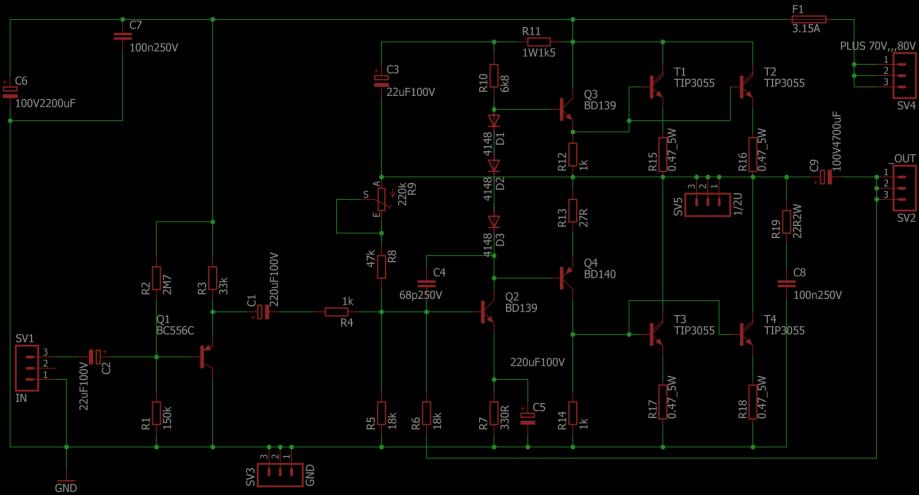 POJAČALO RADI NA NAPONU OD 50V DO 80V,MOJA VERZIJA OVOG POJAČALA JE NAFRIZIRANA,