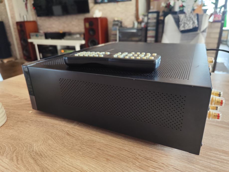 Dual mono pojačalo izvanrednih performansi,atraktivno i elegantno,pa se čovjek iznenadi kad ga treba dignuti,a ono 12,7 kg .. Pozlaćeni kontakti na zvucnickim izlazima.