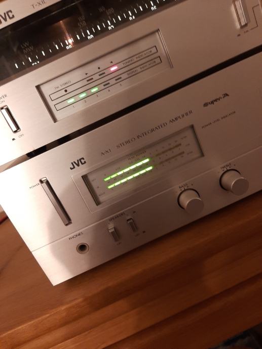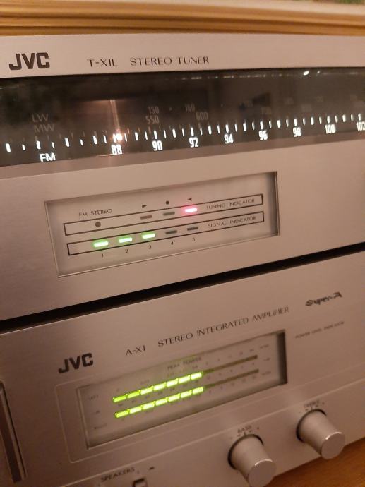 JVC A-X1..super A stereo integrirano pojačalo izvarednih perfomansi iz 1980-ih s izlaznom snagom 30 W po kanalu. Snažan i bogat zvuk pruža izvaredno iskustvo slušanja sa bogatim tonovima i odličnom jasnočom.Bas je snažan, kontroliran, visoki tonovi čisti. Izlaznom snagom 30 w po kanalu lako pokreču različite zvučnike. Pojačalo je u odličnom stanju i radi besprijekorno. Uz pojačalo dolazi tuner JVC T-X1L, odličan prijem stanica...ima indikator podešavanja i jačine prijema signala....ostalo na netu...