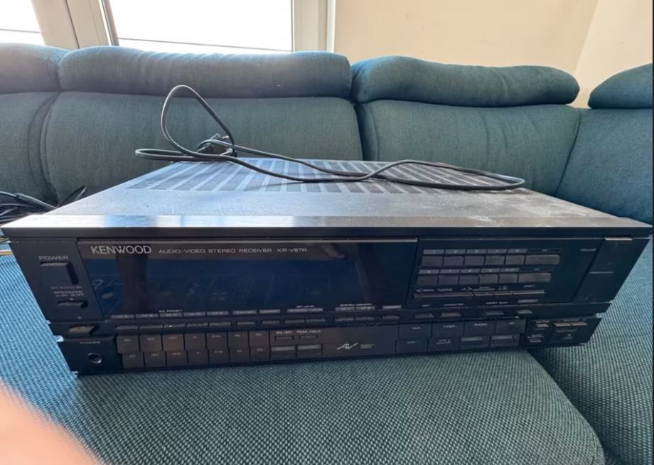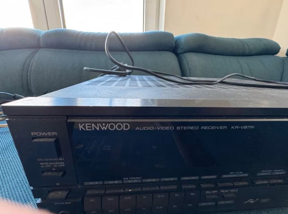 Kenwood KR-V87R is a vintage AM/FM stereo receiver and amplifier from the late 1980s that offers 80 watts per channel of power, Dolby Surround sound, and a range of audio/video inputs. It is known for its distinctive 80s design with a graphic equalizer display.