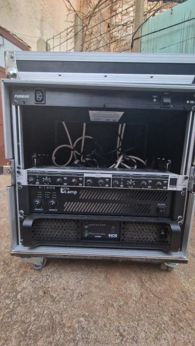 Prodajem komplet rack sa dva pojačala, jednom sretnicom i stabilizatorom napona.