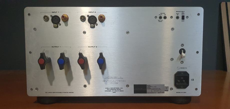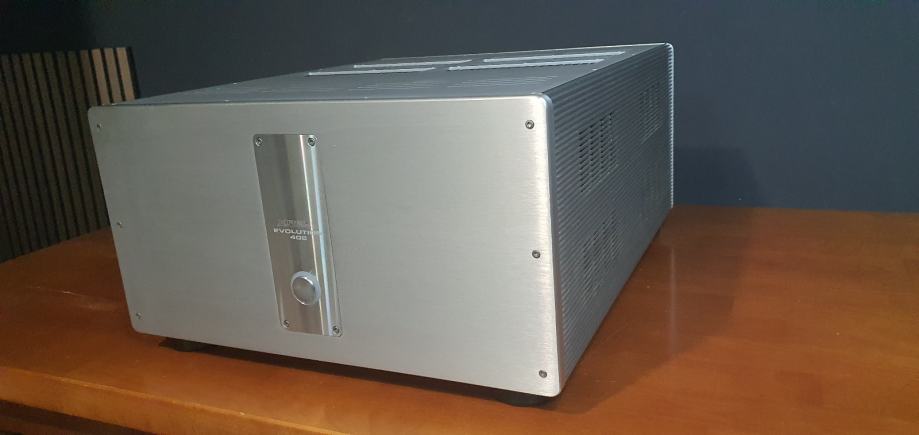 Stereo pojačalo od 400 W 8 oma po kanalu s velikim napajanjem od 5000 VA.Toliko snažno da koristi kabel za napajanje od 20 ampera I industrijski prekidač kao prekidač za napajanje kako bi odgovaralo njegovom internom napajanju od 5000 VA. Aktivna kaskodna topologija eliminira globalnu negativnu povratnu spregu, koristi se samo ugniježđena lokalna povratna sprega oko pojedinačnih blokova pojačanja. Rezultat je izvanredno otvoren, točan i lagan zvuk.