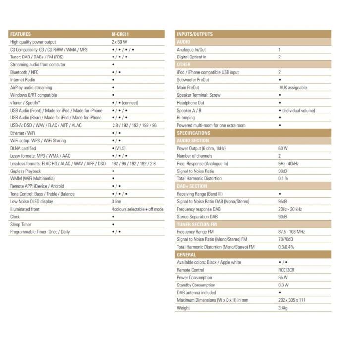 •Supports Apple AirPlay which lets you stream your music library from an iPhone®, iPad®, iPod touch® or iTunes®.