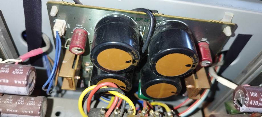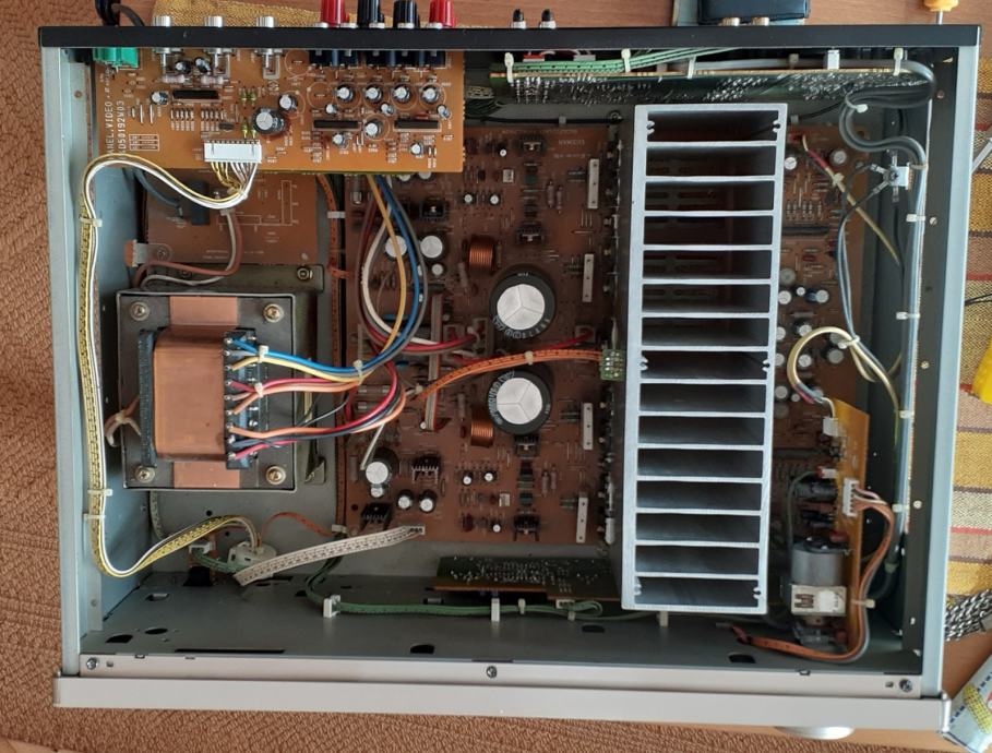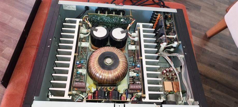 Output transistors are the same as in the PM-15 (Sanken's 2SC2922 / 2SA1216), all four encased in a copper-plated aluminium shield, of course.