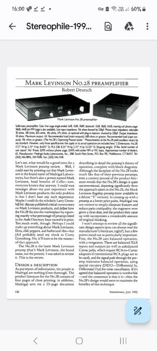 Mark Levinson No.28 iz 1990. godine je iznimno i u svakom pogledu pravo "High-End" pretpojačalo. Muzikalnog, dinamičkog i transparentnog zvuka.