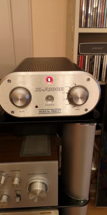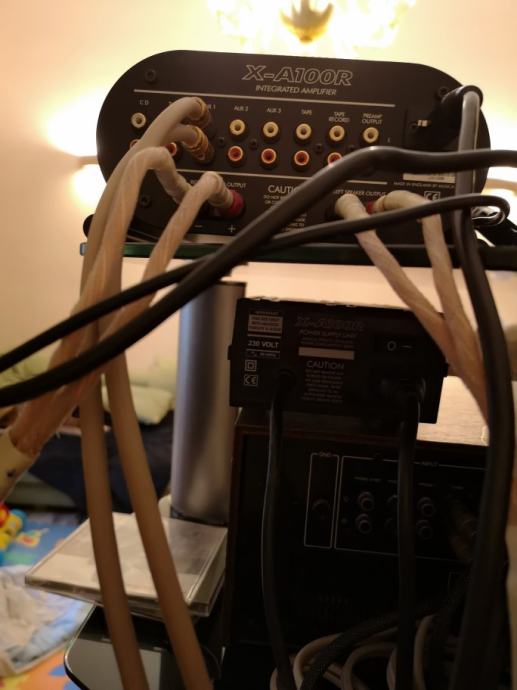 Odlicen ojacevalnik moci 75W, brezhibno delujoc, prav tako vizualno brez prask. Ima loceno napajalno enoto ter daljinca.