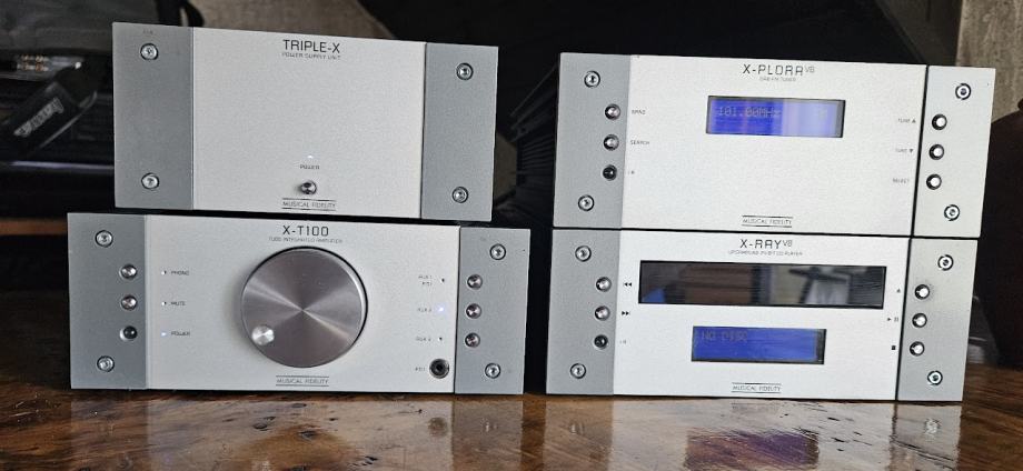 Musical Fidelity X-t100, triple X, X plora, X ray, set teško nabavljiv u ispravnom stanju, fenomenalan zvuk, lampe u predpojačalu, daljinski upravljač, moguća zamjena uz doplatu tel; 092/ 2944-771