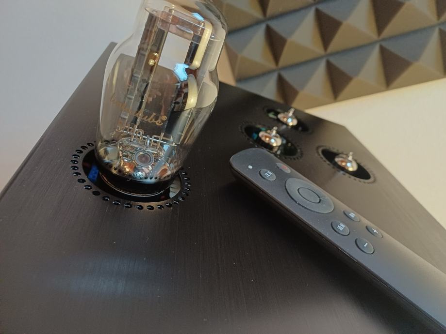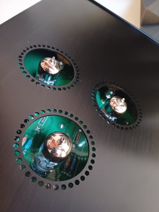 Svaka obitelj lampi ima drugačiji gain, unutarnji otpor i linearnost. Npr. 12AU7 obično daje „puniji“ topliji mid-rich zvuk, 6922 / 6DJ8 često zvuči brže i detaljnije, 12SN7/6SN7 ima veću amplitudu i “tjesniju” dinamiku. Mijenjanjem lampi mijenjate karakter—to je “tube-rolling”. MP-701MK2 podržava širok raspon i ima DIP prekidače/switch za pravilno podešavanje.