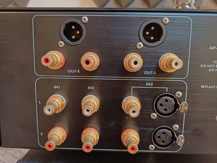 MP-701MK2 ima DIP gain postavke i izlaze RCA/XLR koji dijele isti signal; pri tome proizvođač upozorava na minimalnu ulaznu impedanciju sljedeće komponente (>10 kΩ). Mogućnost odabira lampi i kapaciteta vam omogućuje da uskladite izlaz sa snagom i vrstom pojačala.