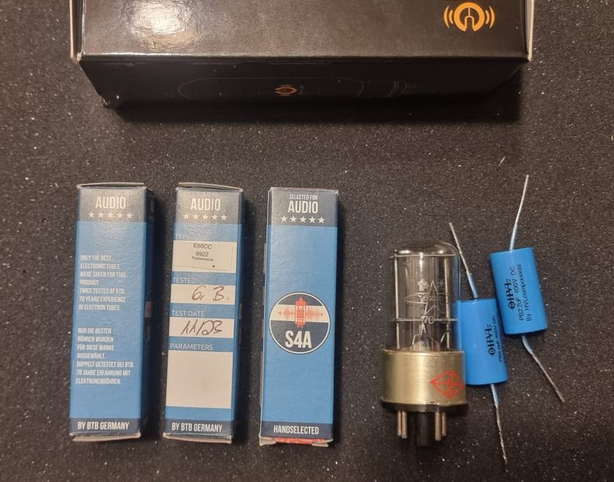 Zamijenjeni spojni kondenzatori sa Mundorf-MCAP-Supreme-EVO-Oil-1u5-1000VUz uređaj idu i orginalne cijevi i kondenzatori.