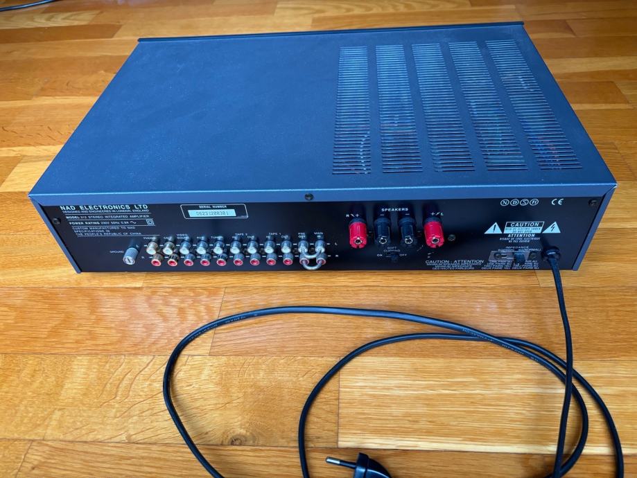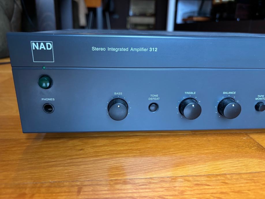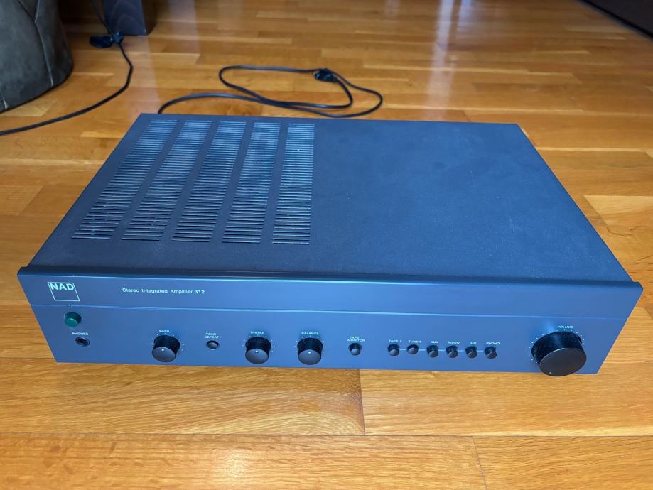 NAD 312 u stanju kao novo. Pojačalo ugodnog i toplog zvuka korektnog basa, ugodne sredine i detalja te glatkih visokih. Iz vremena dok su se pojačala radila sa dobro dimenzioniranim napajenjem i bez integriranih sklopova, znači daleko ozbiljnije nego kasnija produkcija kad se počelo više gledati na troškove, a manje na zvuk. Odličan gramofonski ulaz. Snage ne fali za normalno slušanje u manjim do srednjiim sobama. Za te novce teško da može više.