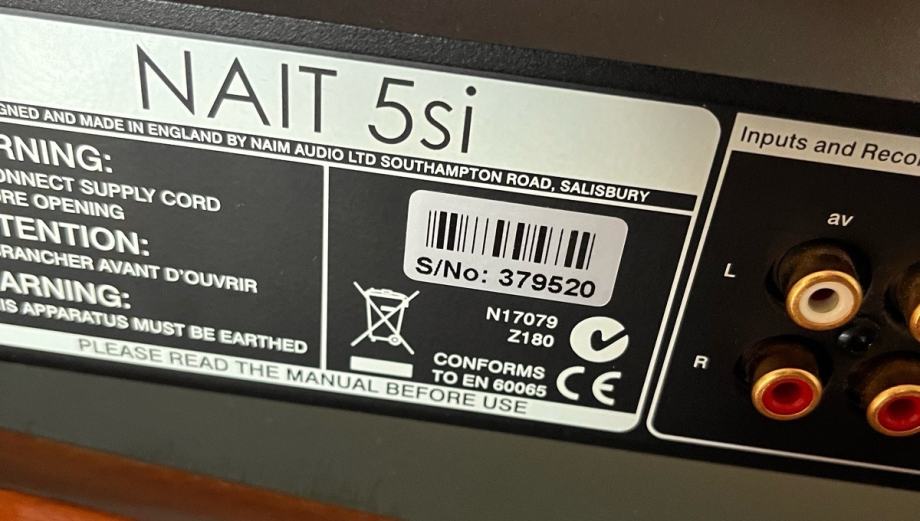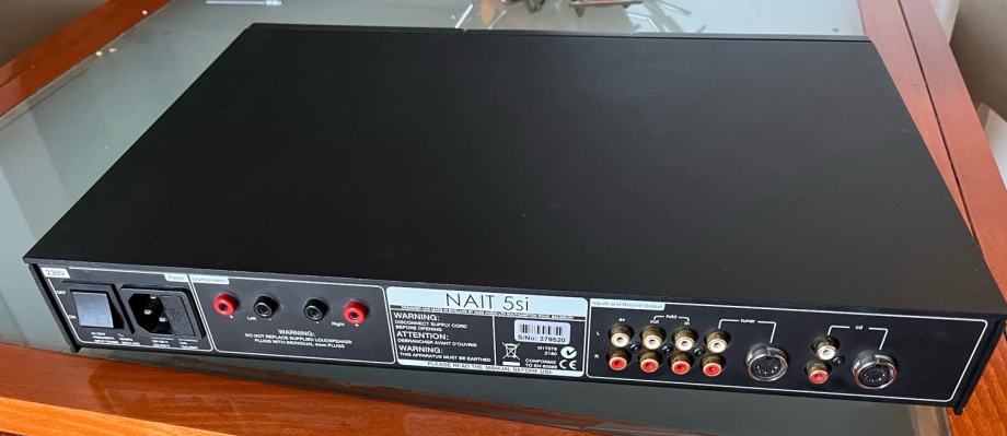 Naim Nait 5si pojačalo je jedno od najdugovječnijih integriranih pojačala koje je proizveo renomirani engleski proizvođač audio opreme. Posjedujem kutiju, daljinski upravljač, originalne upute i strujni kabel. Mogućnost slušanja u vašem sustavu u Zagrebu uz dogovor. Potrebni zvučnički kabeli isključivo s bananama - iz slike se vidi zašto. S/N na slici. Zamjene me u principu ne zanimaju. Prvi sam i jedini vlasnik.