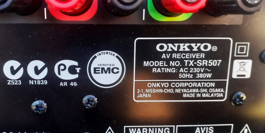 Audio pojačalo, receiver model ONKYO TX-SR507 prodajem pod oštečeno / neispravno / za dijelove (pali se, prikazuje i mjenja funkcije na display-u, ne daje zvuk).