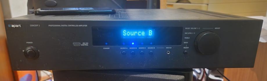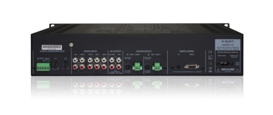 Dugo vremena su instalateri diljem svijeta bili u potrazi za cjenovno prihvatljivim profesionalnim integriranim mixer pojačalom za komercijalnu upotrebu i 24/7 rad u manjim sustavima kako što su prodavaonice, kafići, manje predavaonice, … Njihova potraba proizlazi iz činjenice da mnogo malih poduzetnika u potrazi za audio sustavima često ne želi glomazne i velike profesionalne audio sustave koji premašuju njihove stvarne potrebe. Tradicionalne kombinacije pretpojačalo / mixer, pojačalo, izvori zvuka, limitatori, kontroleri, .. itd., ne samo da opterećuju proračun nego i ukupnim fizičkim dimenzijama čine glomaznu količina aktivne opreme u sustavu. Ne tako rijetko rezultat je kupovina mini audio sistema koji je ne zadovoljava potrebe sustava i često čini opremu za skupljanje prašine smještene negdje iza prodajnog pulta trgovine. Kao odgovor na zahtjeve tržišta predstavljena je serija CONCEPT 1(T) mixer pojačala. Cjenovno povoljno profesionalno mixer pojačalo koje može biti 1 – zonsko stereo, 2 -zonsko povezano (zone u linku) ili 2 – zonsko odvojeno (zasebna regualcije svake zone). Uređaj također nudi različite mogućnosti upravljanja i postavljanja: RS232 kontrola, IR daljinski kontroler, podesivi gain ulaznih signala (Line IN), mikrofonski ulaz sa funkcijom prioriteta (paging), podešavanje maksimalnog izlaznog signala po kanalu (limitator), .. Concept 1 (T) se može koristiti za rad u sustavima: 1 zona stereo , 2 vezane mono zone ili 2 zasebno podesive mono zone. Korisnik ima mogućnost kontrole sljedećih funkcija: glasnoća, nivo mikrofonskog signala, podešavanje srednjih, visokih i niskih frekvencija.. Sve kontrole kao i sam uređaj mogu biti zaključane kako bi se npr. spriječila upotreba uređaja od neovlaštenih osoba. KARAKTERISTIKE: Expert način postave (pristup može biti ograničen za spriječavanje zloupotrebe): – Podešavanje način rada zone: 1 stereo zona, 2 volume-linked zone ili 2 nezavisno podesive zone – Ograničavanje maksimalnog izlaznog nivoa pojačala za svaku zonu zasebno (per zone) – Maksimalni nivo mikrofonskog signala (po zoni) – Podešavanje nivoa signala na linijskim audio ulazima – Automatska glasnoća – Podešavanje pozivnog mikrofona (samo zona 1 ili 2, obje zone, paging On/Off, ..) Profesionalne značajke: – 2 opcije uređaja: CONCEPT 1 (2x80W@4?) ili CONCEPT 1T (2x60W@100V) – samostalna jedinica, RS232 ili IR kontrolirana – digitalni limitator omogućava potpunu kontrolu glasnoće u sustavu – 4 stereo linijska ulaza, svaki ima podesiv nivo signala na ulazu – Linijski ulaz 4 dodatno ima 3,5 audio jack na prednjoj ploči (za npr. mobitel, tablet, MP3 player, ..) – dodatna 2 linijska audio izlaza: fiskni i varijabilni (za npr. subwoofer ili dodatno pojačalo) – ugrađen “high-pass” filter (za primjerice pasivni subwoofer) – kontrola temperature i automatska zaštita uređaj – opcionalno kao dio dodatne opreme (naručuje se zasebno): IR daljinski i IR extender
