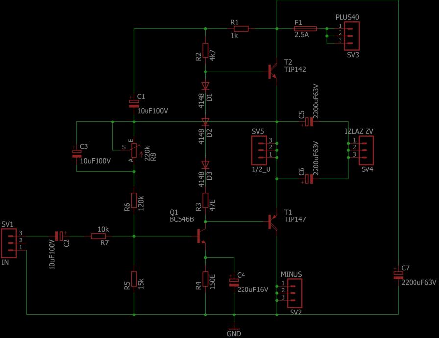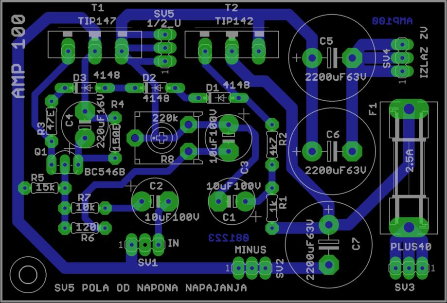 POJAČALO RADI NA NAPONU OD 40 DO 45 VDC.