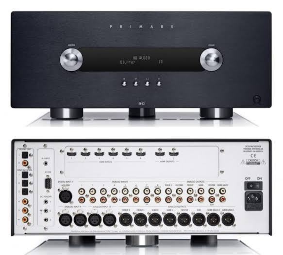 Primare SP33 je vrhunsko pretpojačalo i procesor surround zvuka (7.1 kanal) dizajniran za audiofilske performanse i jednostavnu upotrebu u kućnom kinu, a ističe se uravnoteženim (XLR) konektorima i naprednom digitalnom obradom. Uređaj nudi 5 HDMI ulaza, 2 HDMI izlaza, te preciznu D/A konverziju za višekanalni LPCM, što ga čini idealnim za reprodukciju visokokvalitetnih izvora zvuka