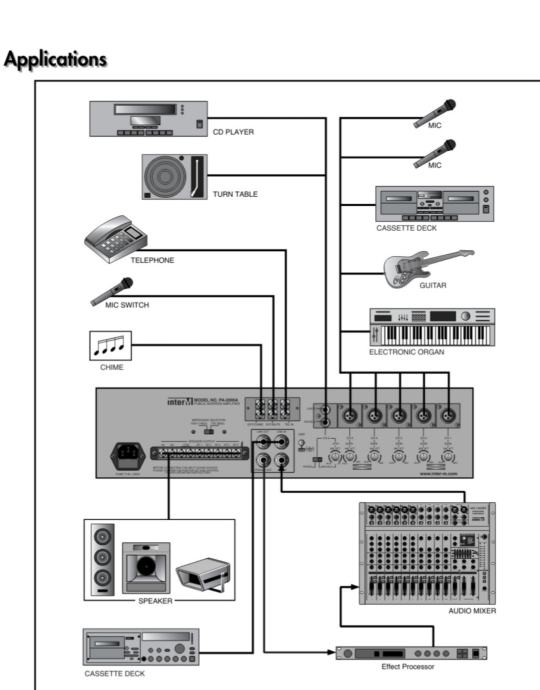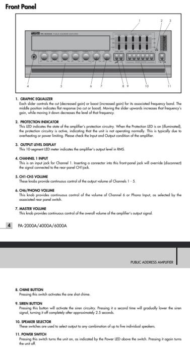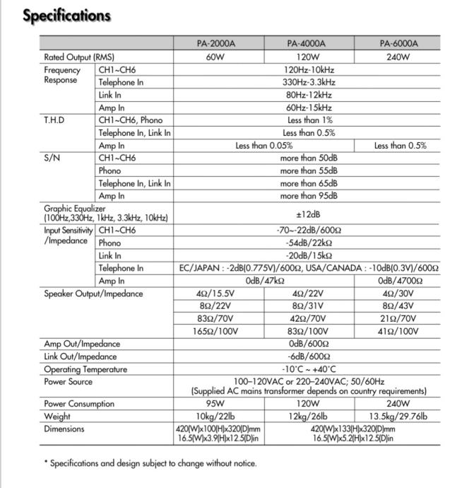Specifikacije i primjene utora pojačala nevedene su na slikama iz priručnika za ovaj model.