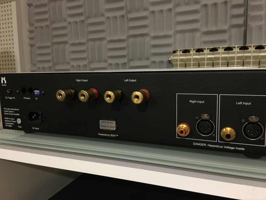 Description: Solid-state, two-channel “Hybrid class-A” power amplifier with class-D switching (“SDAT”) output stage. Inputs: 2 pairs line-level (1 pair RCA, 1 pair XLR). 4 WBT multiway binding posts. Power output: 150Wpc into 8 ohms (21.8dBW), 225Wpc into 4 ohms (20.5dBW), 275Wpc into 2 ohms (18.3dBW). Frequency response: 10Hz-20kHz, ±0.5dB. THD+N: