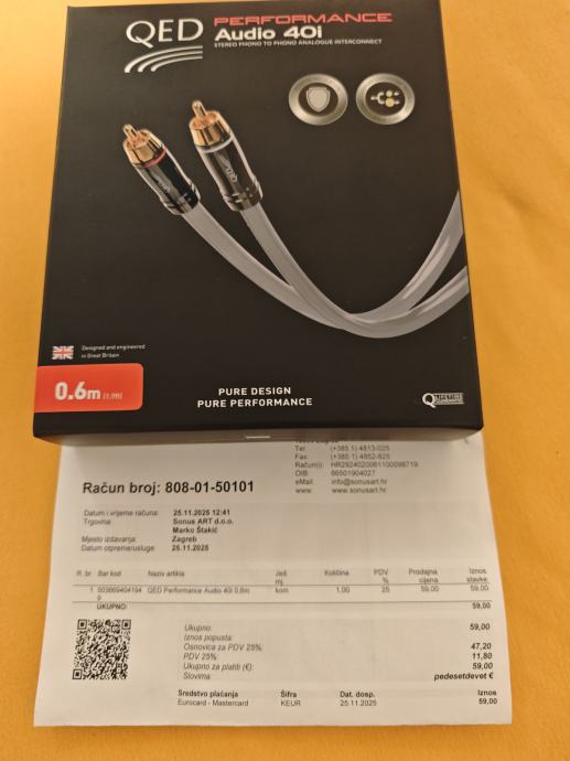 Prodajem vrhunski Qed performanse audio 40i Rca kabel,dužina 60 cm, novo, malo mi je prekratak.