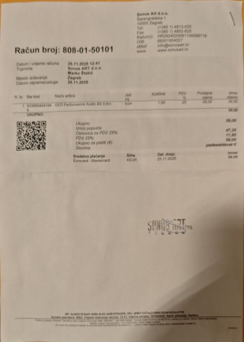 Jedan koaksijalni digitalni kabel 1 metar, također oklopljeni, kvalitetan kabel,15 eura.