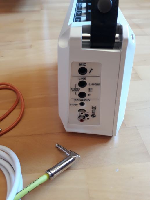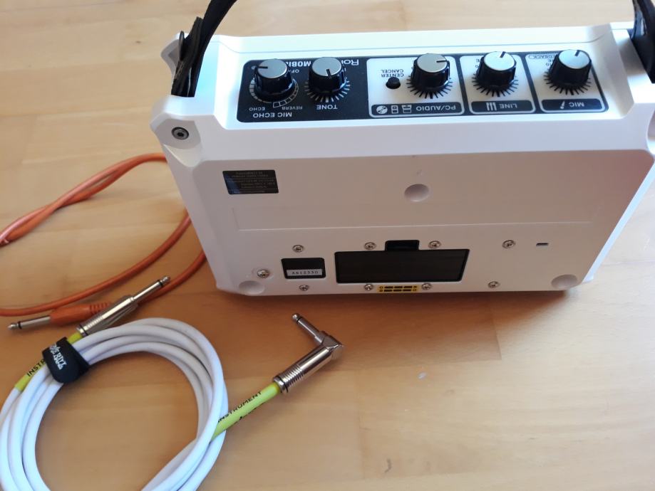 Roland Mobile BA pojačalo za akustične instrumente bijele boje sa dva instrumentalna kabla / bijeli 3m i naranđasti 30cm..