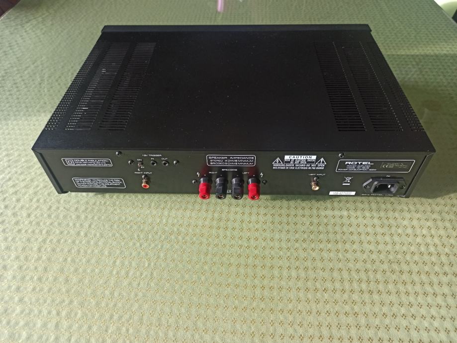 Prodajem Rotel RB-06 stereo pojačalo snage. Radi se o kvalitetnom Hi-Fi pojačalu iz renomirane Rotel serije, poznate po solidnoj izradi i čistom zvuku. Pojačalo ima klasičan crni dizajn s ventilacijskim otvorima na vrhu kućišta za pravilno hlađenje. Na prednjoj strani nalazi se samo LED indikatori, dok su na stražnjoj strani svi potrebni priključci za zvučnike i ulazne veze.