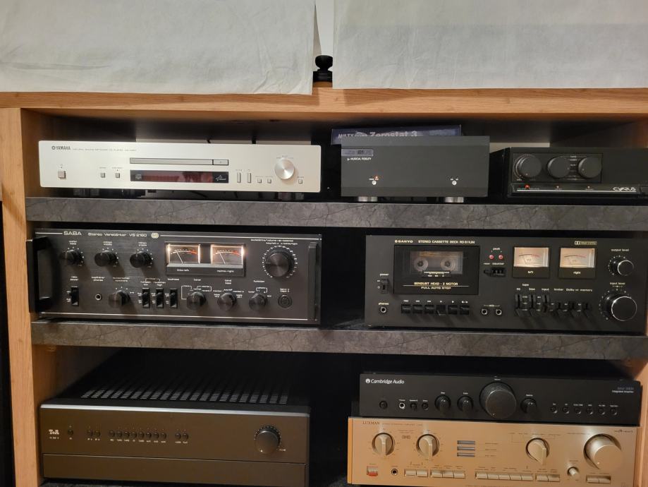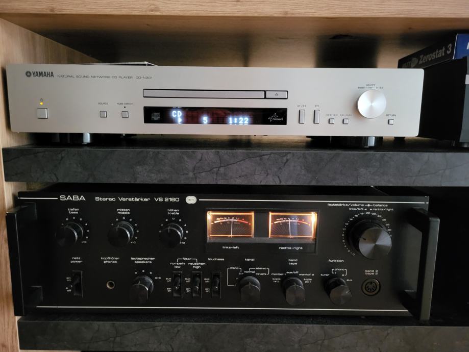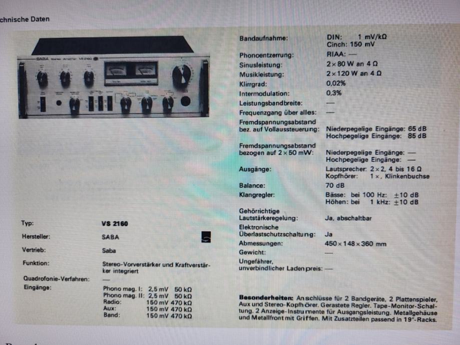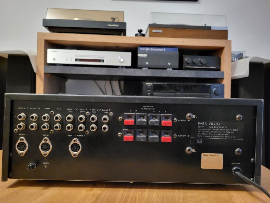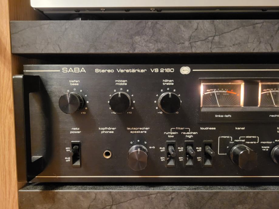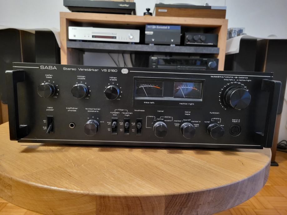 Prekrasno vintage pojačalo koje je jako dobro očuvano i tehnički besprijekorno. Radi se o izvrsnom pojačalu iz 1980. godine (cijena novog je bila 900 DM!!), koje je također vrlo snažno i teško. (2 x 80W sinus na 8 Ohma i teži 10 kg!). Nudi mnoge analogne ulaze i priključke za dva para zvučnika. Ovo pojačalo je zapravo Sanyo DCA 611 izrađeno po narudžbi za SABA Njemačka. Ima dva izvrsna phono ulaza, što je super za vlasnike koji imaju dva gramofona. Pojačalo je pravo zvučno iznenađenje koje nudi izvrsnu dinamiku i vrlo čist, prirodan zvuk. Svi prekidači su besprijekorni i bez ikakvog pucketanja i zujanja. Sa svojim atraktivnim VU mjeračima, nudi pravi užitak ne samo u zvuku već iu vizualizaciji.