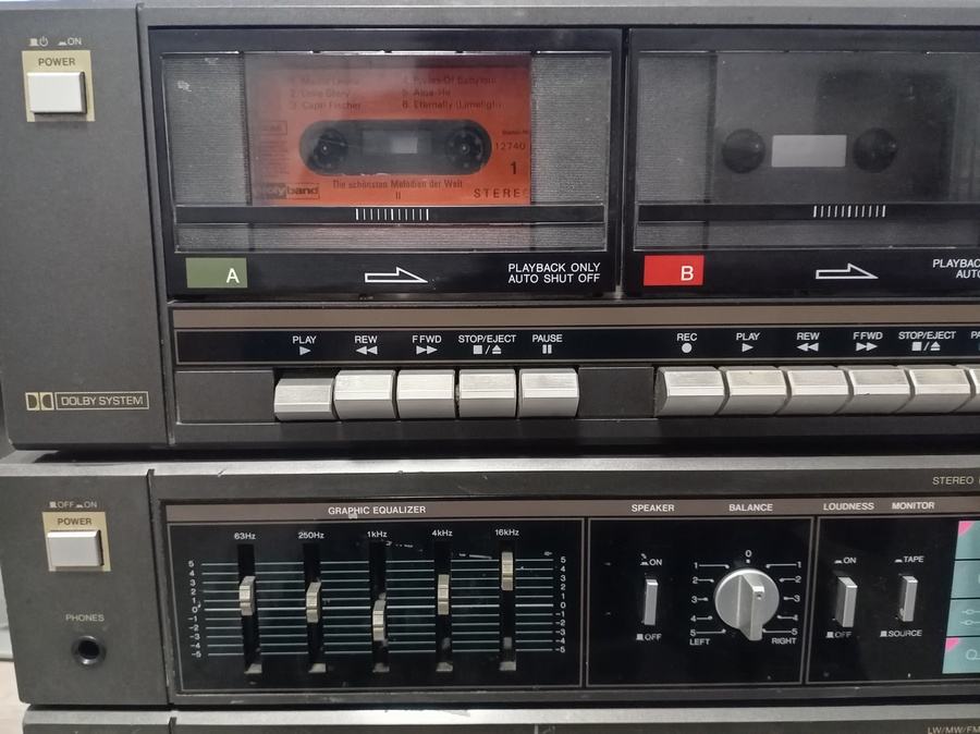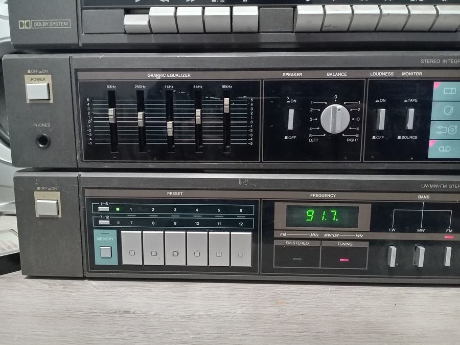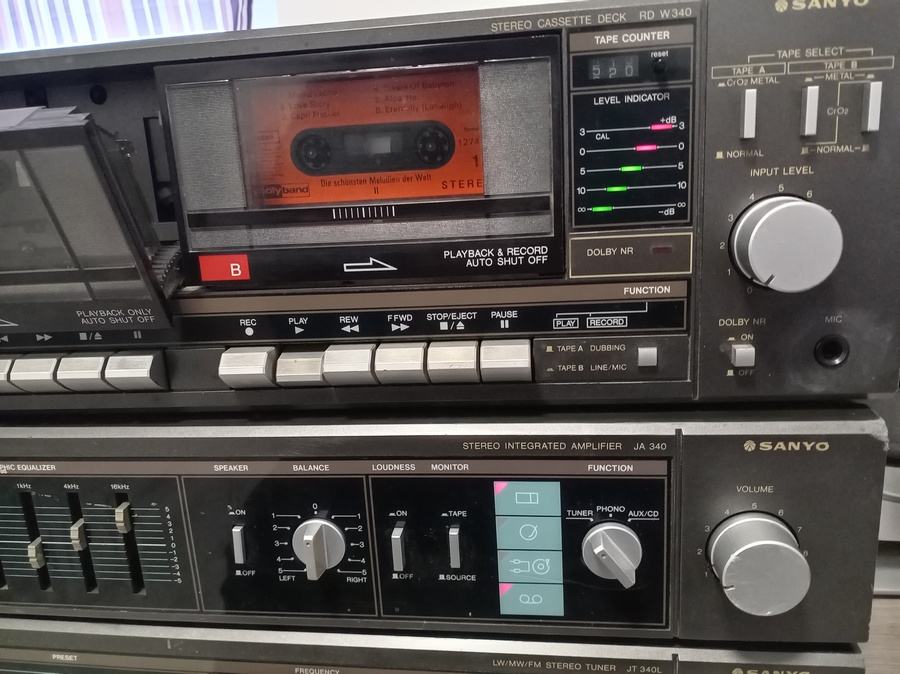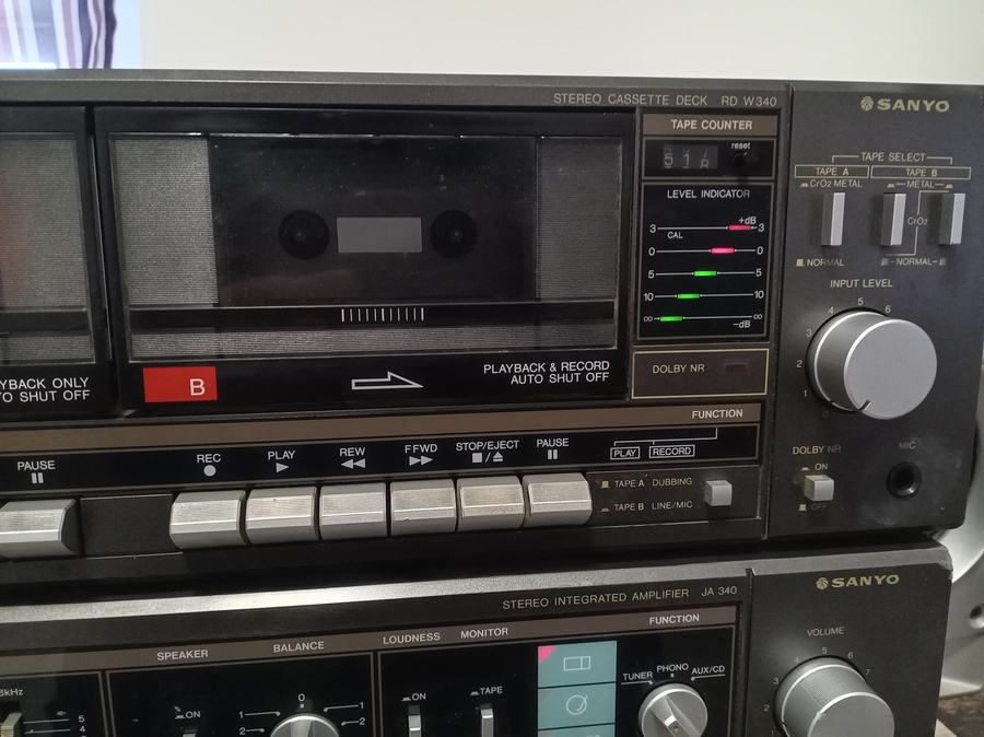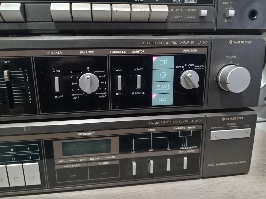Prodajem Sanyo 340 , komplet u komponentama , koji se sastoji od stereo pojačala JA 340 , tunera stereo digital JT 340 L , duplog stereo kazetofona RD W 340 . Japan . Pojačalo 2x30w , puno jači zvuk nego bi se očekivalo , potpuno ispravno , phono ulaz , loudness , graphic equalizer , aux/cd , tape , tuner , ulaz za slušalice . Tuner sa displayom , potpuno ispravan , sa 12 memorijskih mjesta . Dvostruki kazetofon , u stvari ispravan , oba decka rade , ali treba zamjenit gumice jer rade neujednačeno , dolby ,CrO2 , metal , normal , dubbing , ulaz za mikrofon . Boja tamno srebrna . Dinenzije komponenti d42 š22 cm . ( zvučnici nisu u kompletu , ali se može dogovoriti , poklanjam ih ako dođete osobno po komplet ) . tel : 099 4722848