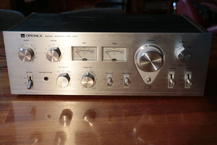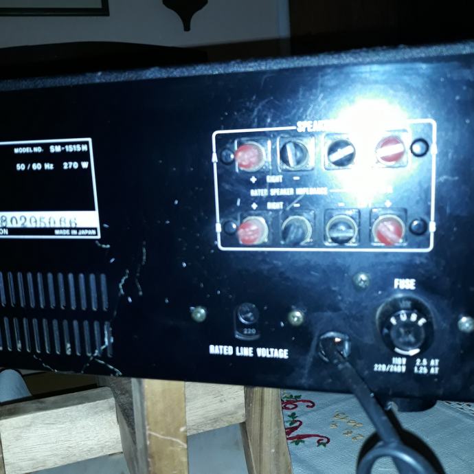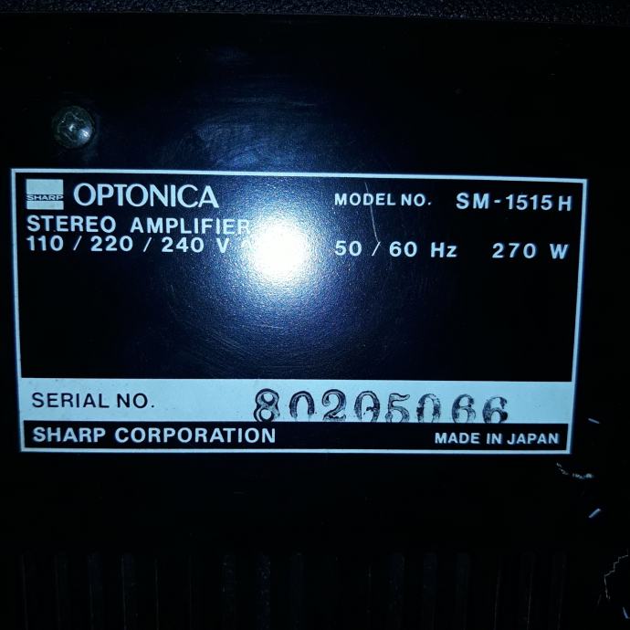 Vrlo rijetko, visokokvalitetno pojačalo kompanije Sharp. Ovaj SM-1515 dolazi iz dobrog vremena. To se jasno vidi iz odličnog kvaliteta izrade. Debela aluminijumska ploča i čvrsti aluminijumski gumbi.