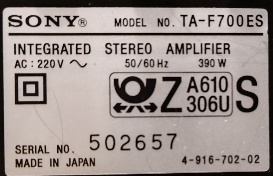 Ovo vrhunsko integrirano pojačalo tvrtke Sony ima sve. 2x 110 W RMS! na 8 ohma, 2x 145 na 4 ohma, 19 kg težine, natprosječna izrada i karakteristike za poželjeti.Zvuk? Bogat detaljima, zabavan i pouzdan s gotovo svim opterećenjima. Kao što znate iz velikih Sony Esprita.