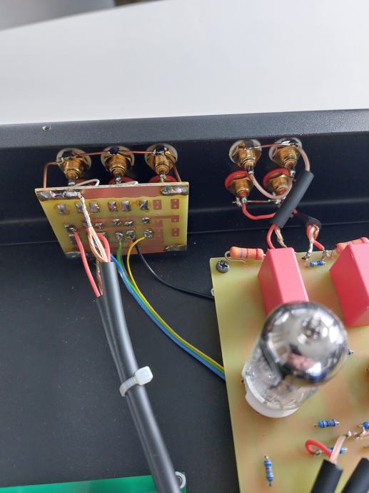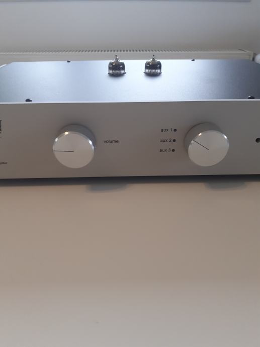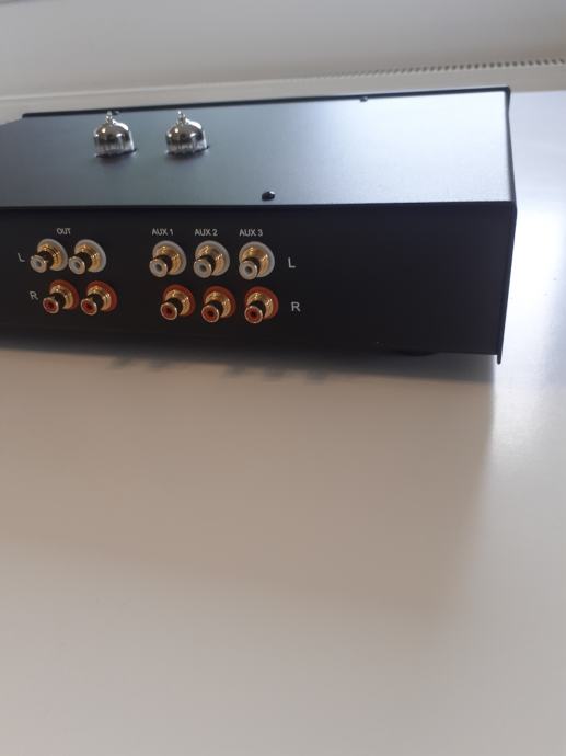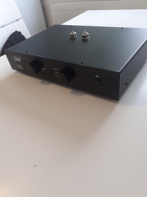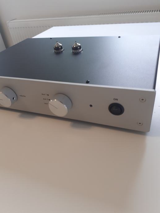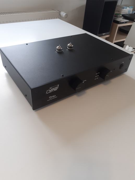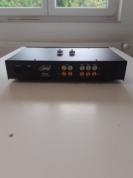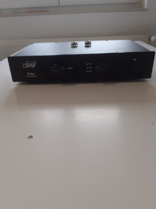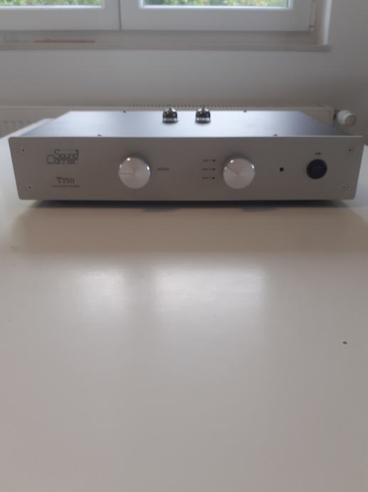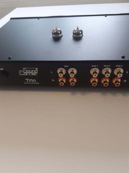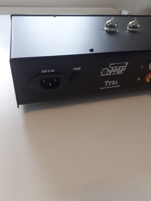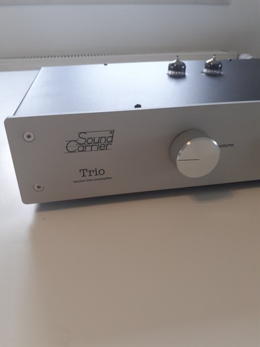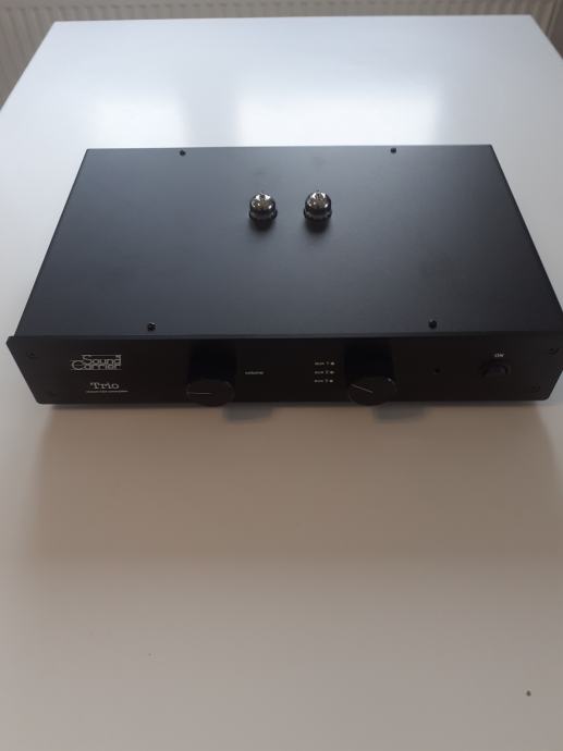 Linijsko cijevno pretpojačalo Sound Carrier Trio, novi model, upotrebljene elektronke 2 x ECC 82 Tungsol, 3 linijska ulaza, 2 izlaza ( za bi-amping ili subwoofer ), daljinski upravljač za volume control, prodajem za 1000 EUR. Tel. 091/567-2703