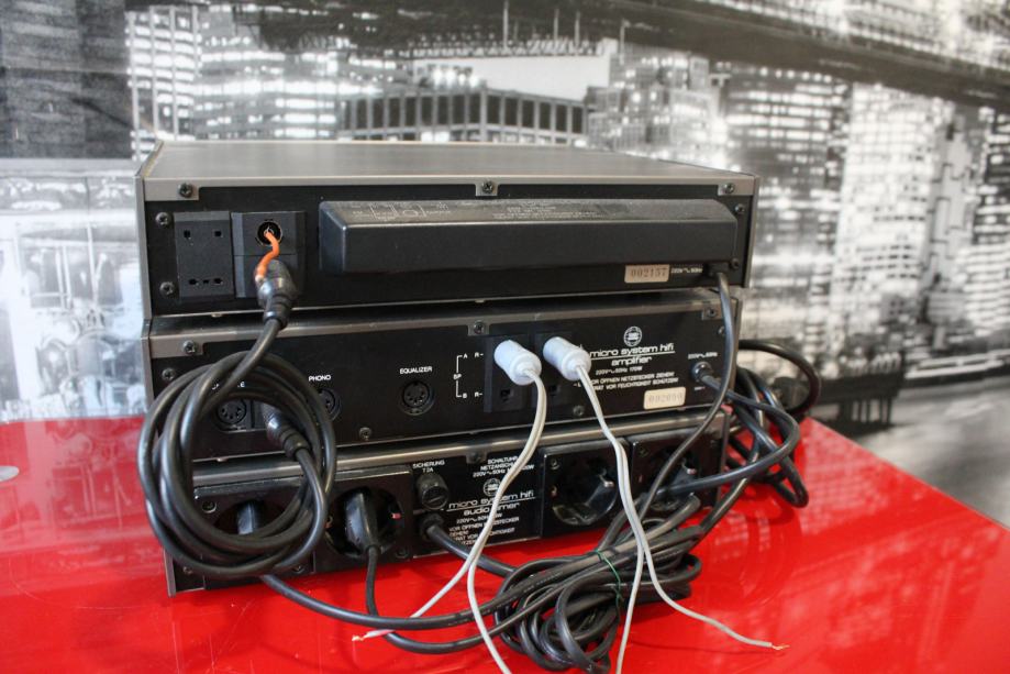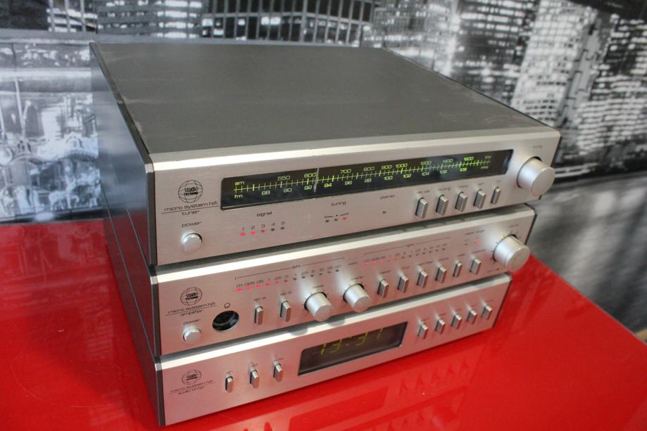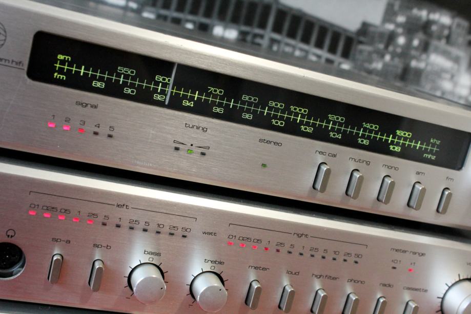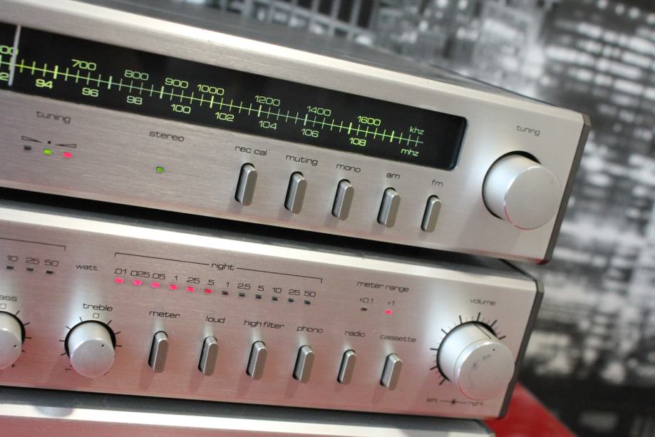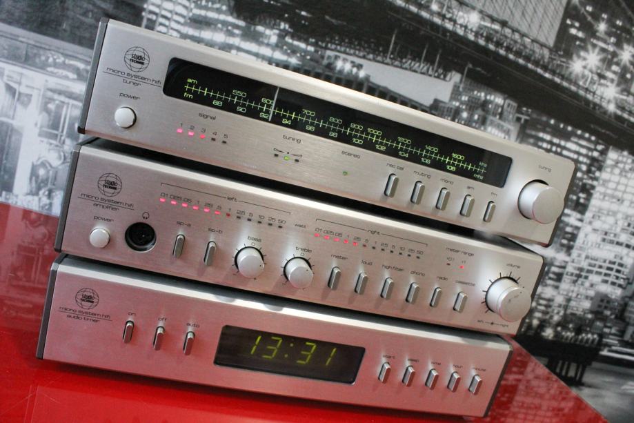 Mini vintage hi-fi set koji se sastoji od pojačala, tunera i digitalnog timera. Masivna aluminijska konstrukcija, potpuno metalna šasija i klasičan analogni dizajn iz kasnih sedamdesetih godina.