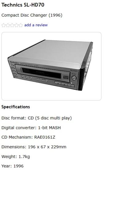 SL-HD70 CD player (5 disc multi play) je brz i pouzdan te pruža vrhunsku kvalitetu zvuka bez ikakvih prekida i prihvaća snimljene CD-ove.