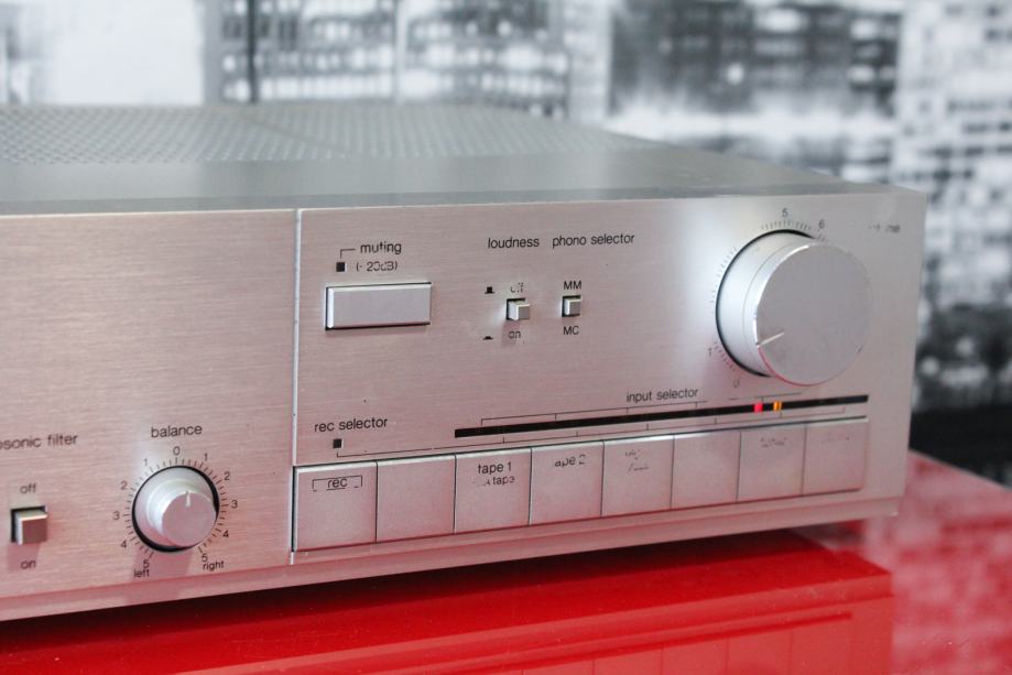 Pojacalo nije najbolje ocuvano ali je potpuno ispravno, 2x65w, 7kg, radi odlicno odlicnog zvuka, 4 aux ulaza i phono ulaz za gramofon ,, slanje postom 10e ili preko protekta za par eur, mob 0989604069
