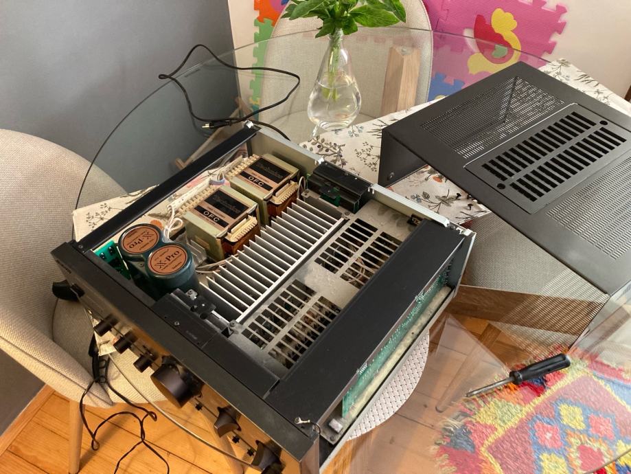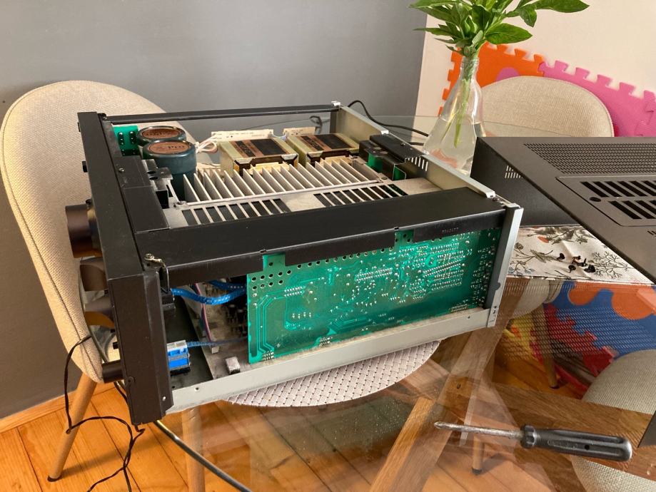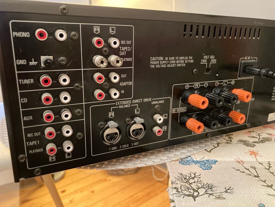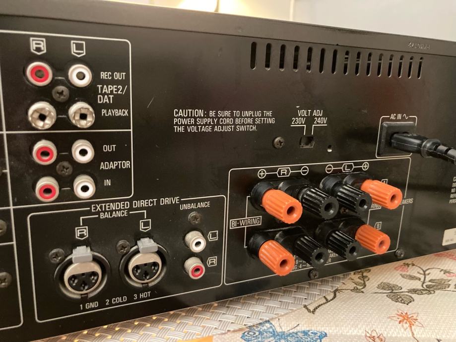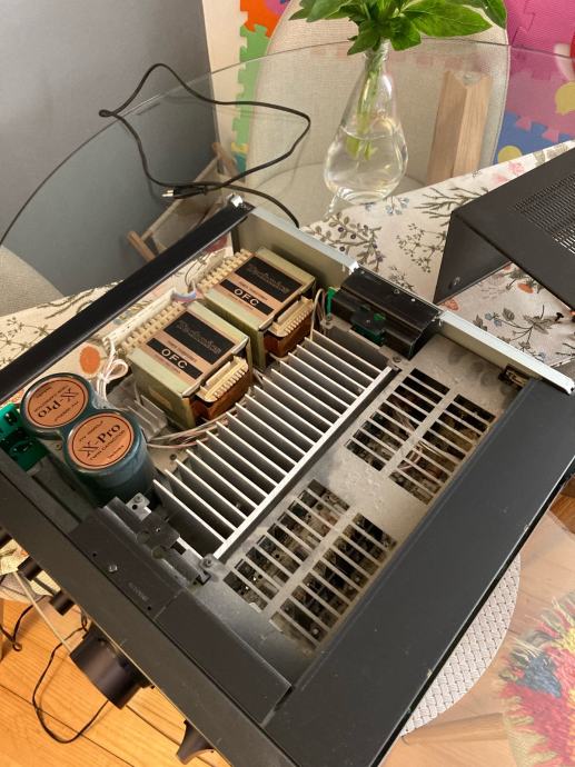 Vrlo rijetko u ponudi , top model stereo pojačala iz 90-ih , 2 OFC transformatora , 2X15 000 uF 71V , 4 tranzistora po kanalu , balansirani i nebalansirani ulazi , tipka direct za najkrači put signala , uglavnom puno rezervne snage za bilo koje zahtjeve , takva se danas vise ne proizvode , možda i da ali ispod 2000€ ne sigurno , originalno stanje , zamjena nije opcija a cijena je Beton