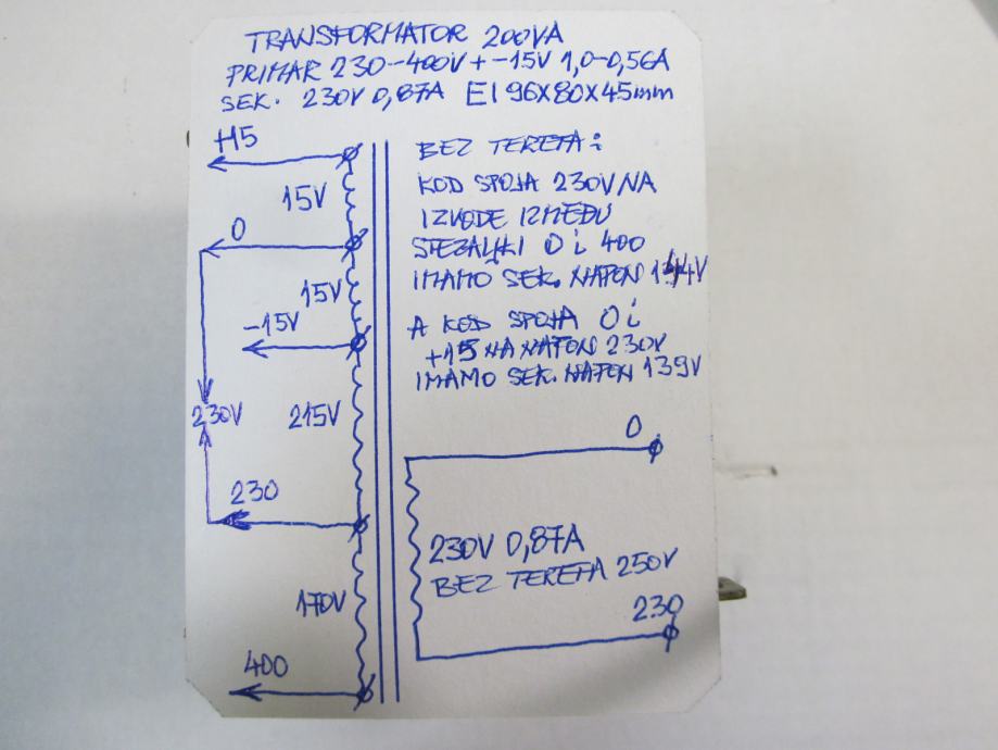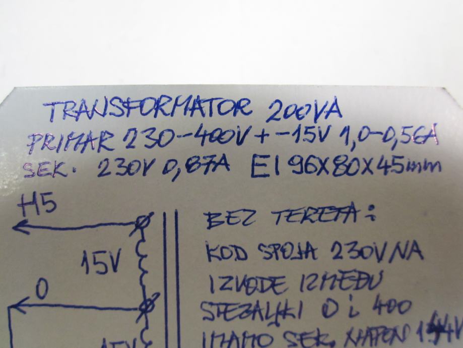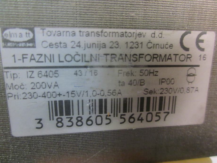 ODVOJNI TRANSFORMATOR 230/230V ILI 400/230V.
