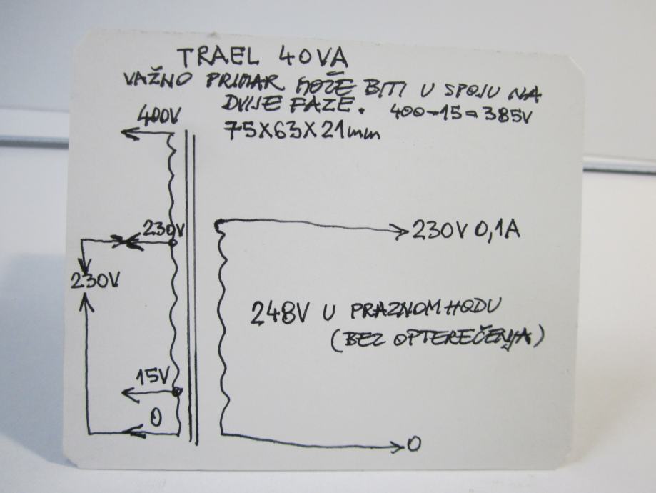 TRANSFORMATOR 40VA PRIMAR230/400V SEKUNDAR 230V0.1A (OSIJEK)