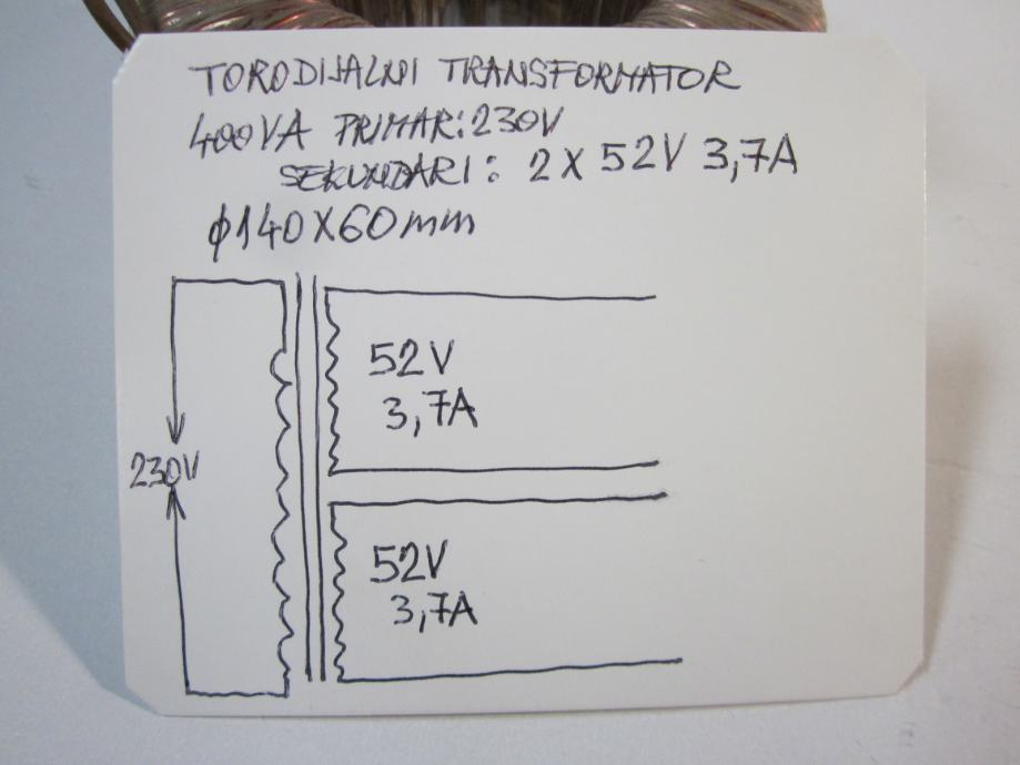 TRANSFORMATOR TOROIDNI 400VA 230V/ 2 x 52V (OSIJEK)