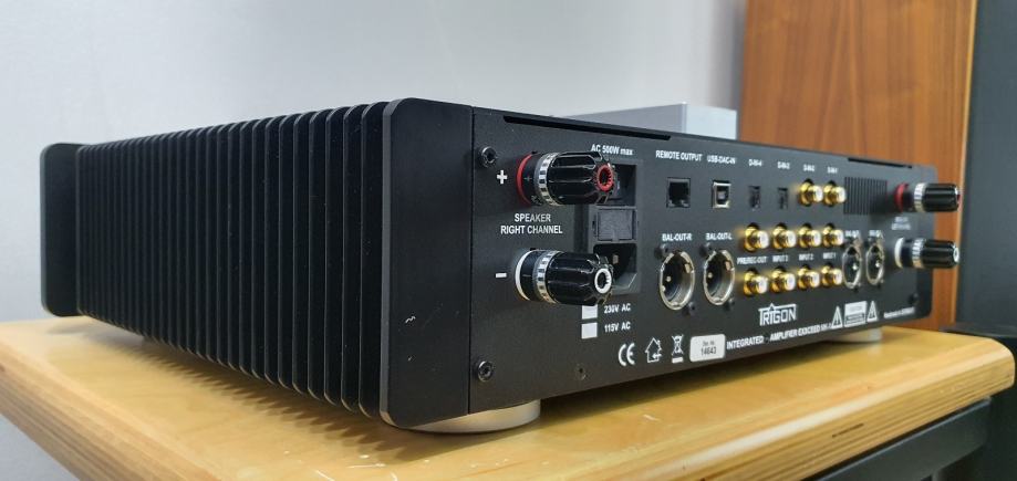 Teškaš u mnogim pogledima, Exxceed je izgrađen oko čvrstog aluminijskog i čeličnog kućišta u sendvič konstrukciji, bez vidljivih vijaka. Opcije završne obrade su eloksirane, Nextel premazane ili kromirane po ukusu. Uključene su nožice koje apsorbiraju vibracije u pokušaju borbe protiv učinaka mikrofonije.Exxceed ima četiri analogna ulaza, četiri SPDIF ulaza i USB ulaz za računalno izvedeni audio (PCM 384kHz 32bit i DSD do 128k). USB DAC, Exxceed koristi AK4490 čip koji zajedno s XMOS sučeljem može obraditi digitalni zvuk visoke rezolucije. Nakon pretvorbe u analogni signal, svi signali se relejima prebacuju na glavni dio pretpojačala. Za glasnoću Trigon koristi PGA2311, provjereni kontroler koji se pokazao vrlo dobrim u ovoj primjeni. Trigon ugrađuje izlaz pretpojačala u balansiranom i nebalansiranom obliku; nebalansirani izlaz može biti sa ili bez kontrole glasnoće. Nakon kontrole glasnoće, signal stiže do pojačala za slušalice i pojačala snage. Pojačalo za slušalice sastoji se od operacijskog pojačala i nekoliko dodatnih tranzistora, dok pojačalo snage ima cascode naponsko pojačalo na ulazu i četiri tranzistora snage na izlaznom stupnju struje. Svako pojačalo snage ima vlastiti transformator snage (to je dvostruko mono napajanje), s kondenzatorima snage vrlo blizu izlaznih tranzistora kako bi se pomoglo u isporuci snažnog i dubokog basa. Svi digitalni sklopovi imaju vlastita napajanja za zaštitu analognih dijelova od digitalnog šuma u stupnjevima pojačala.Prekrasan TFT zaslon, koji se može isključiti i pojedinačno konfigurirati u boji, jasno prikazuje sva radna stanja i radne funkcije
