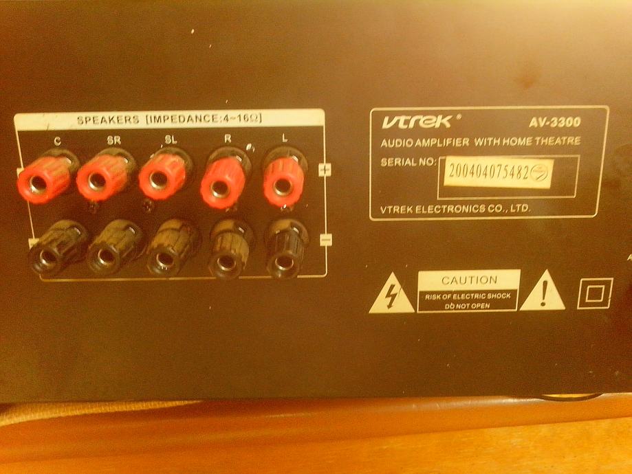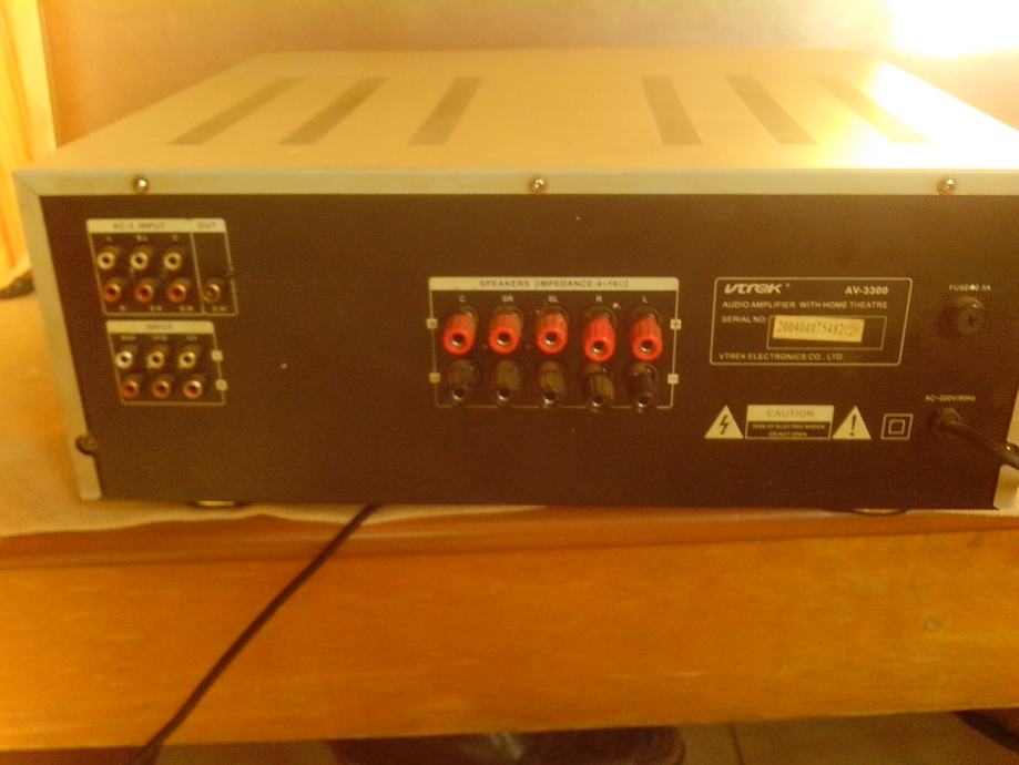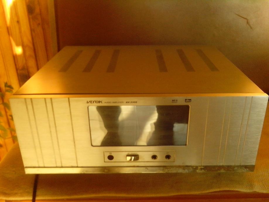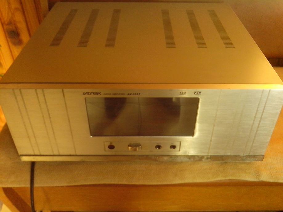 Prodajem pojačalo Vtrek AV3300.Pojačalo je ispravno,snage je 5x80w, imaju displej na touch,bez daljinskog upravljača,sve funkcije mogu se ručno izabrati(bass,visoki, balans,ulazi).Pojačala imaju toroidni trafo(vrijednosti :29-0-29,18-0-18,6-0-6)veliki aluminijski hladnjak,Motoroline tranzistore 5 pari.Pojačalo je vizualno u dobrom stanju,cijena je 220kn.