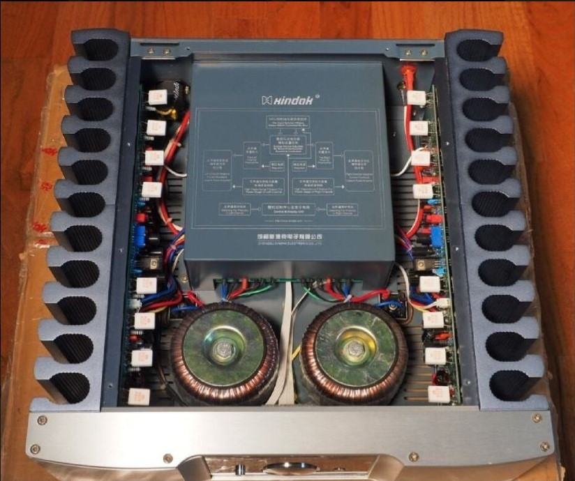 Two toroidal power transformers are adopted for the left and right channels, each of which follows a separate amplification path.