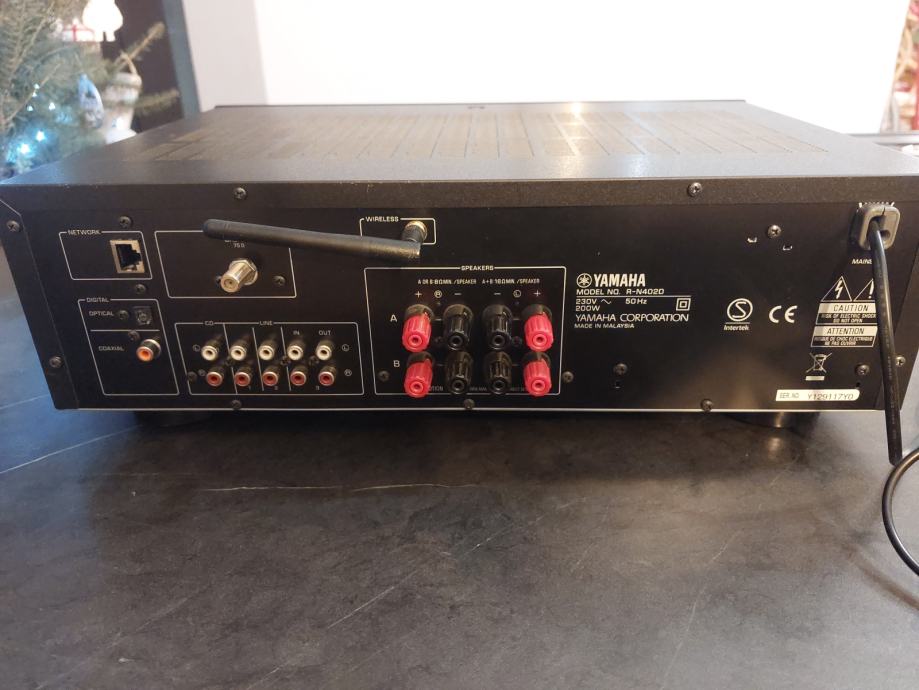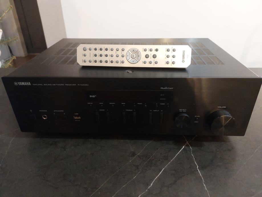 Prodajem Yamahu R-N402D, u odličnom stanju, očuvan. Odlična stvar je povezivanje putem app na mobitelu tako da se daljinac u biti ni nemora koristiti. MusicCast koristi bežičnu mrežu visokih performansi za pružanje uživanja u glazbi i zvuku. Može prenositi digitalni glazbeni sadržaj s vašeg pametnog telefona, računala ili NAS-a na druge MusicCast uređaje u vašem domu. Također može dijeliti glazbu s vanjskih uređaja kao što su CD player ili TV spojeni na R-N402D.