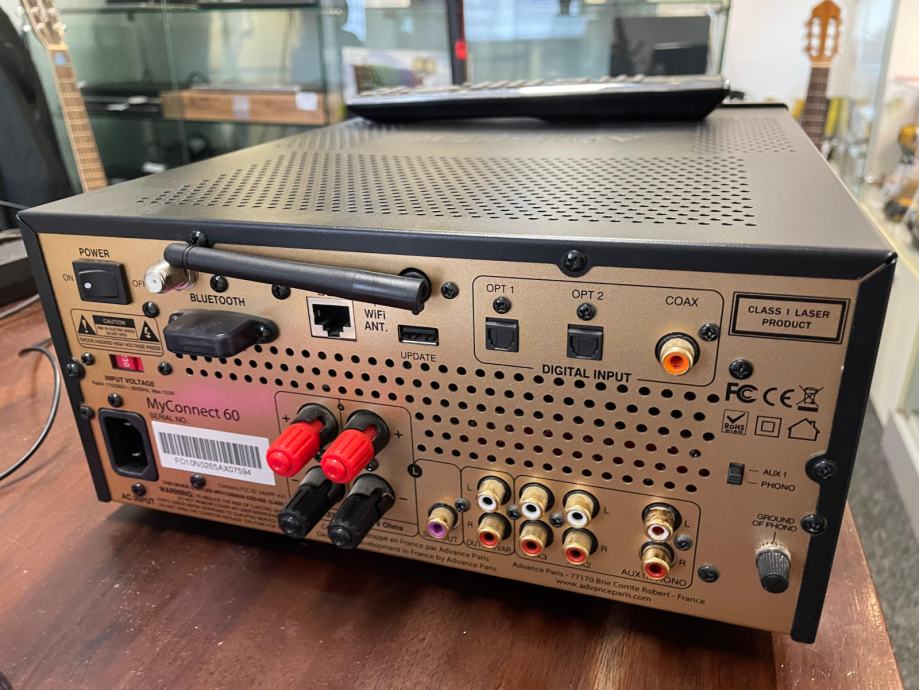 MyConnect 60 je audiofilski višenamjenski uređaj s ugrađenim 2 x 60 W pojačalom, koji se spaja na WiFi i Ethernet mrežu, ima DAB + / FM radio, CD reproduktor, USB čitač i Bluetooth.