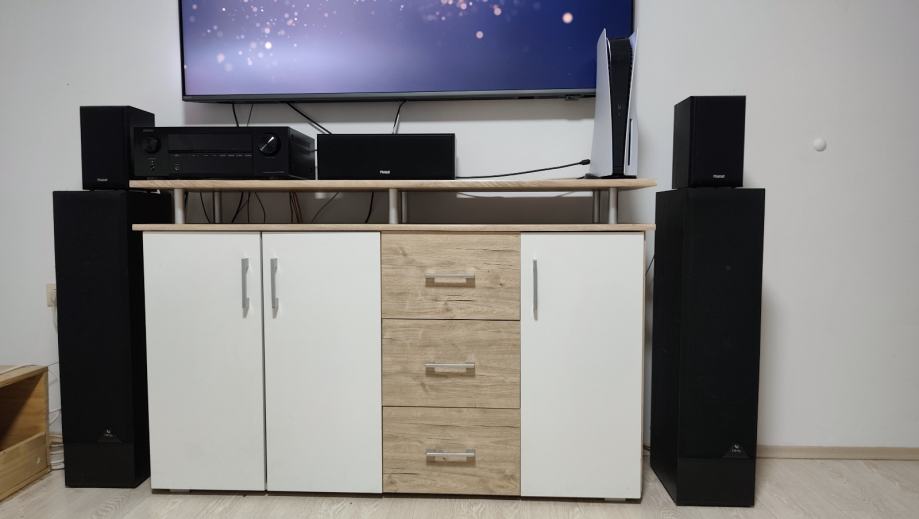 Prodajem Sustav za kućno kino koji se sastoji od receivera, para visokih podnih zvučnika, para manjih prednji zvučnika, centralnog zvučnika . Sustav omogućava kvalitetan surround sound doživljaj za filmove i glazbu. Receiver je marke Denon, Veliki podni zvučnici su marke Infinity, a centralni i surround su Magnat. Cijena je fiksna.