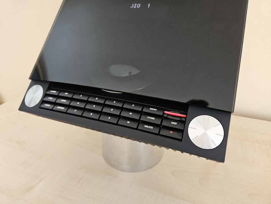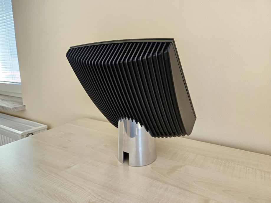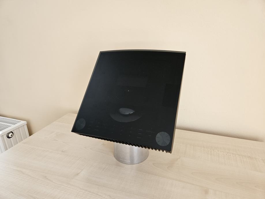 Kada je BeoSound 4 postavljen na okruglo aluminijsko postolje, zrači jednostavnom elegancijom iz svakog kuta.